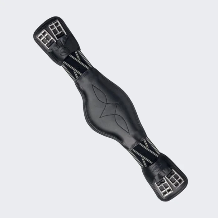 Zeer zachte leren dressuursingel van Prestige met veel elastiek in het midden.