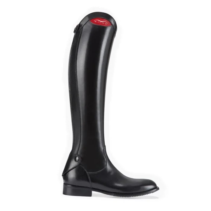 Animo Rijlaars ZEN met het rode ANIMO logo, is een klassieke rijlaars gemaakt van echt leer, vervaardigd door handenarbeid door Italiaanse schoen makers.
