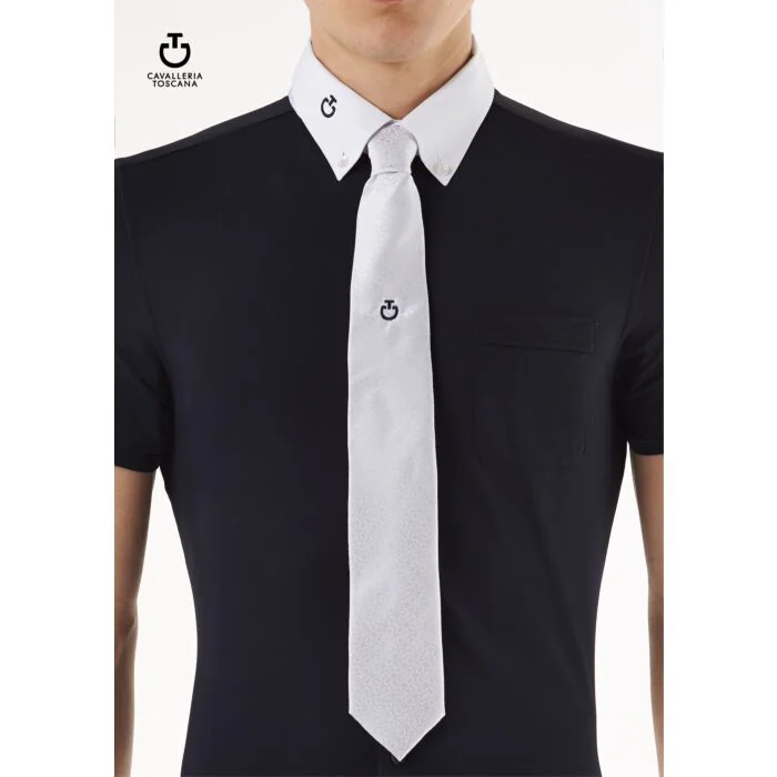 CAVALLERIA TOSCANA Wedstrijd Stropdas. Deze stropdas is van zeer mooie kwaliteit en heeft een patroon in de stof. Met een logo van CT. Ongeveer 5 cm breed. In de kleur Wit. PRODUCT INFORMATIE